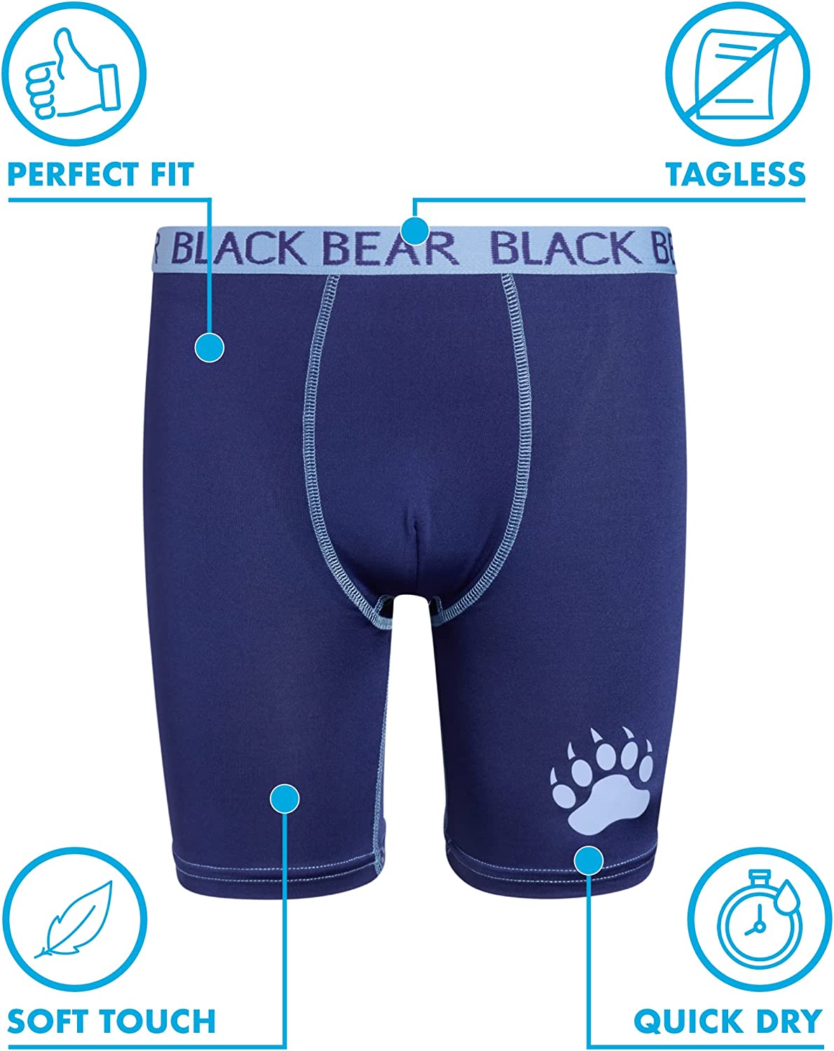 Black Bear Boys Performance Dry-Fit Compression Long Boxer Briefs (Pack of 8)