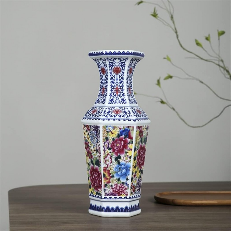 ZSEDP Antique Ceramic Vase Hexagonal Vase Celadon Chinese Living Room Flower Decoration Crafts $21748.0 |