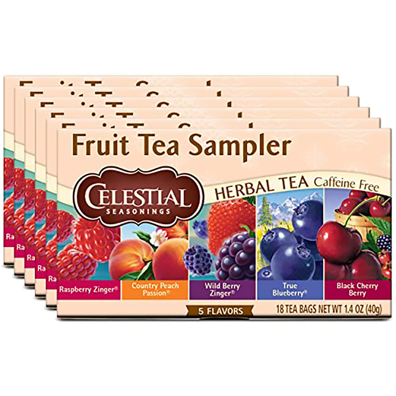Celestial Seasonings Herbal Tea, Fruit Tea Sampler, Raspberry Ginger, Rustic Peach Passion, Wild Berries, Real Blueberries and Black Cherry Berries, Caffeine-Free, 18 Tea Bags (6 Pack)