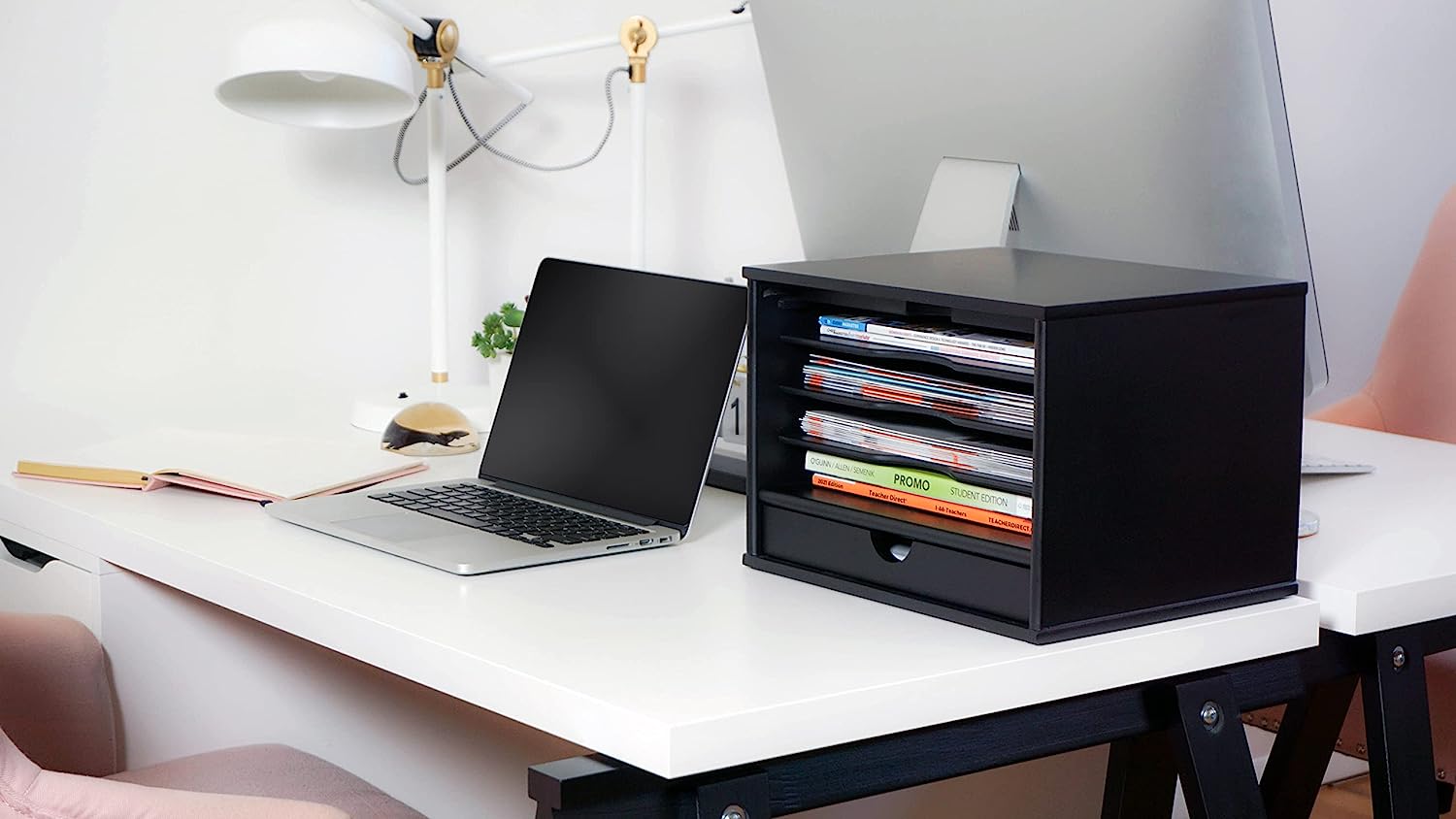Victor Wood Midnight Black Collection, 4-Tier Desktop Organizer, Black, (4720-5)