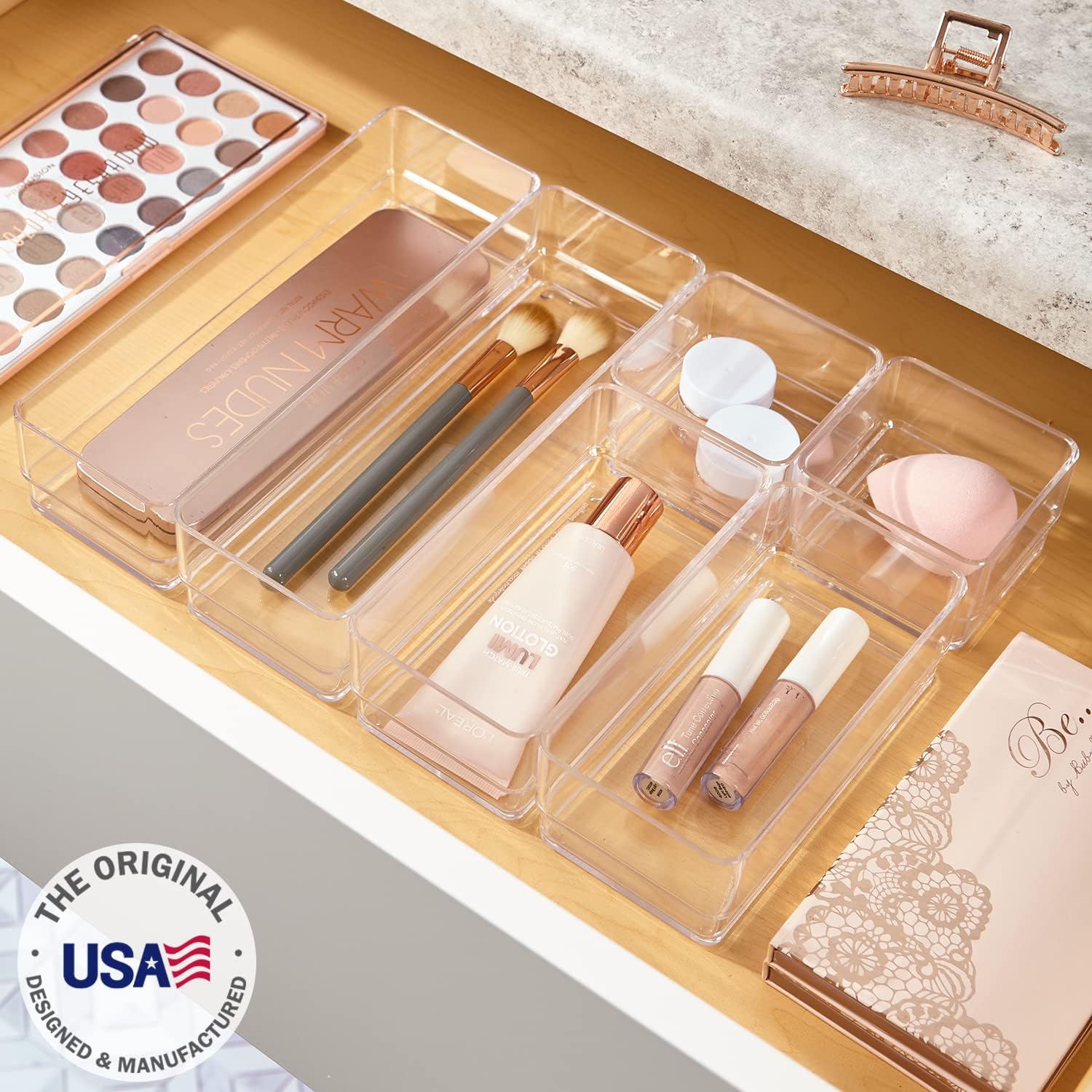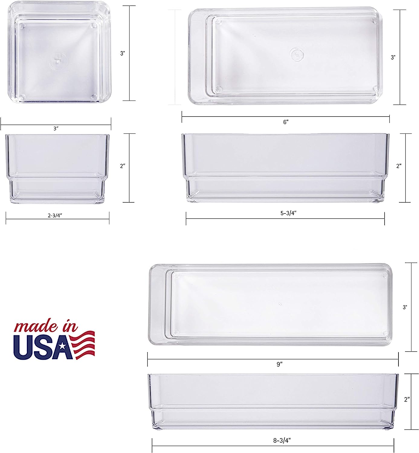 STORi SimpleSort 6-Piece Stackable Clear Drawer Organizer Set |Multi-Size Trays |Small Cosmetic Dresser Storage Bins & Desk Drawer Dividers |Made in the USA