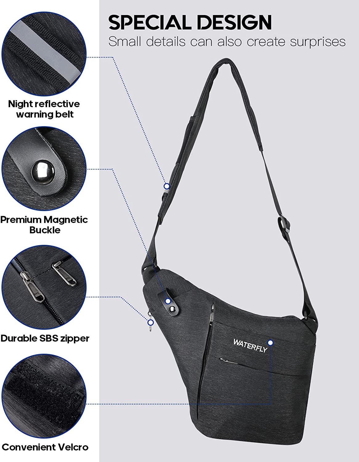 WATERFLY Sling Crossbody Chest Bag: Slim Anti Theft Crossbody Shoulder Bag Invisible Side Bags Men Women $3389.0 |