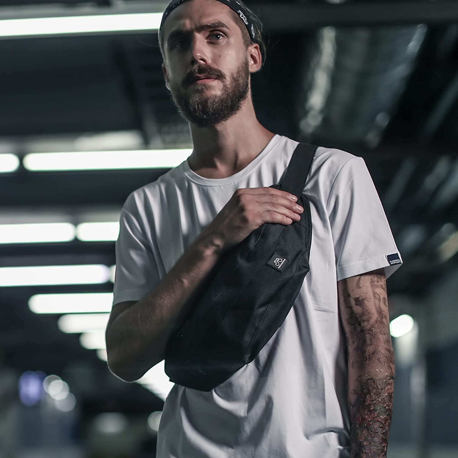 Women's Waist Pack Men's Unisex Waist Pack with Headphone Jack and Zipper Adjustable Shoulder Strap, Black Waist Pack for Outdoor and Outdoor Activity Gym (Waist Pack).