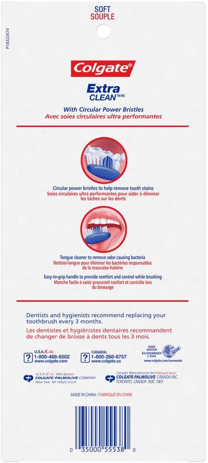 Colgate Extra Clean Toothbrush, Adult Soft Toothbrush, 6 Count (Pack of 1)